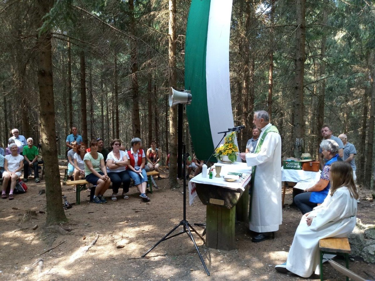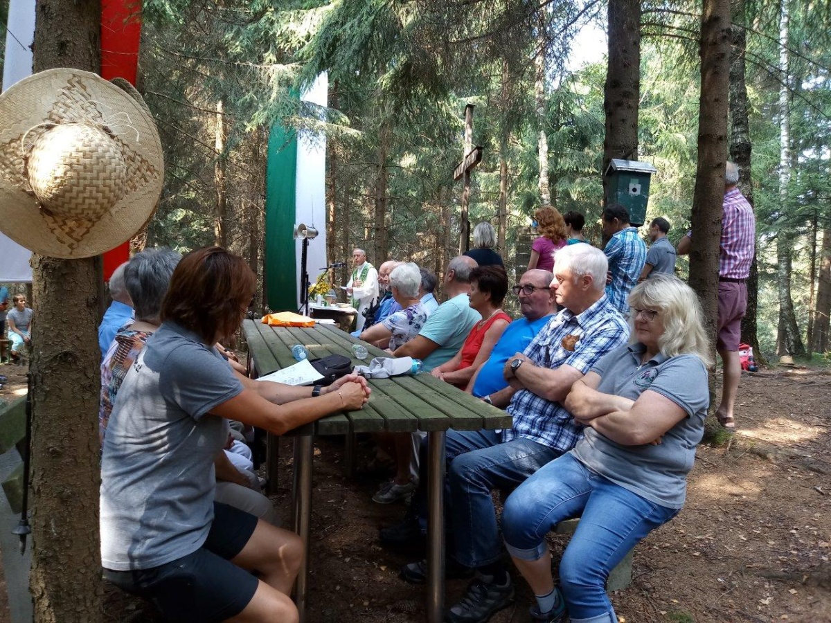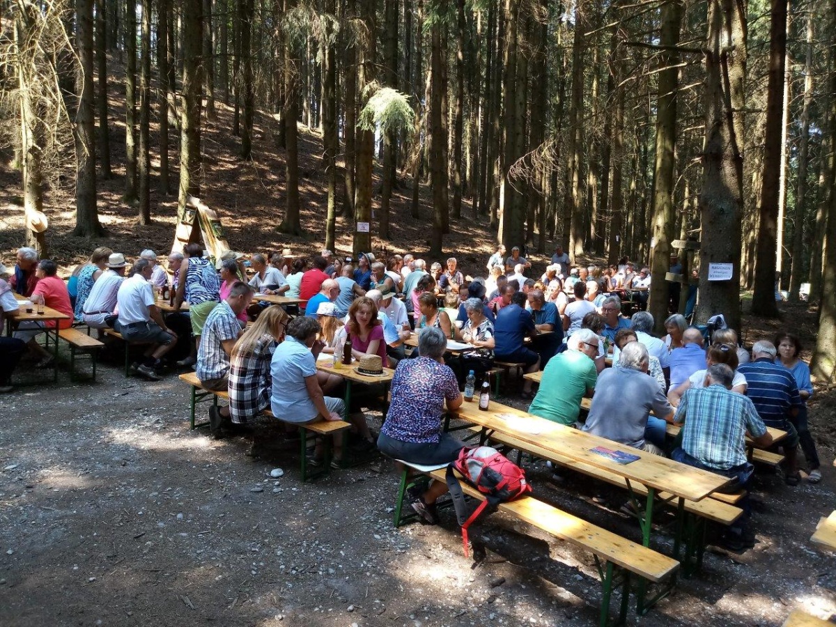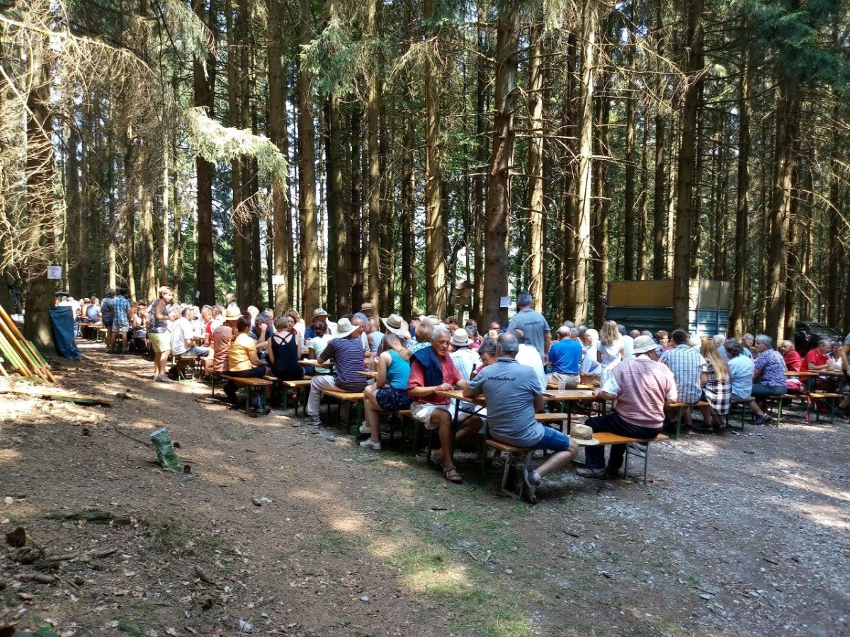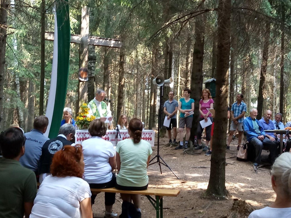Zum Jubiläum machten sich bei herrlichem Wetter wieder viele auf den Weg zum Wiedhackkreuz, um gemeinsam Gottesdienst zu feiern und anschließend noch bei einem gemütlichen Frühschoppen die gute Waldluft zu genießen. |