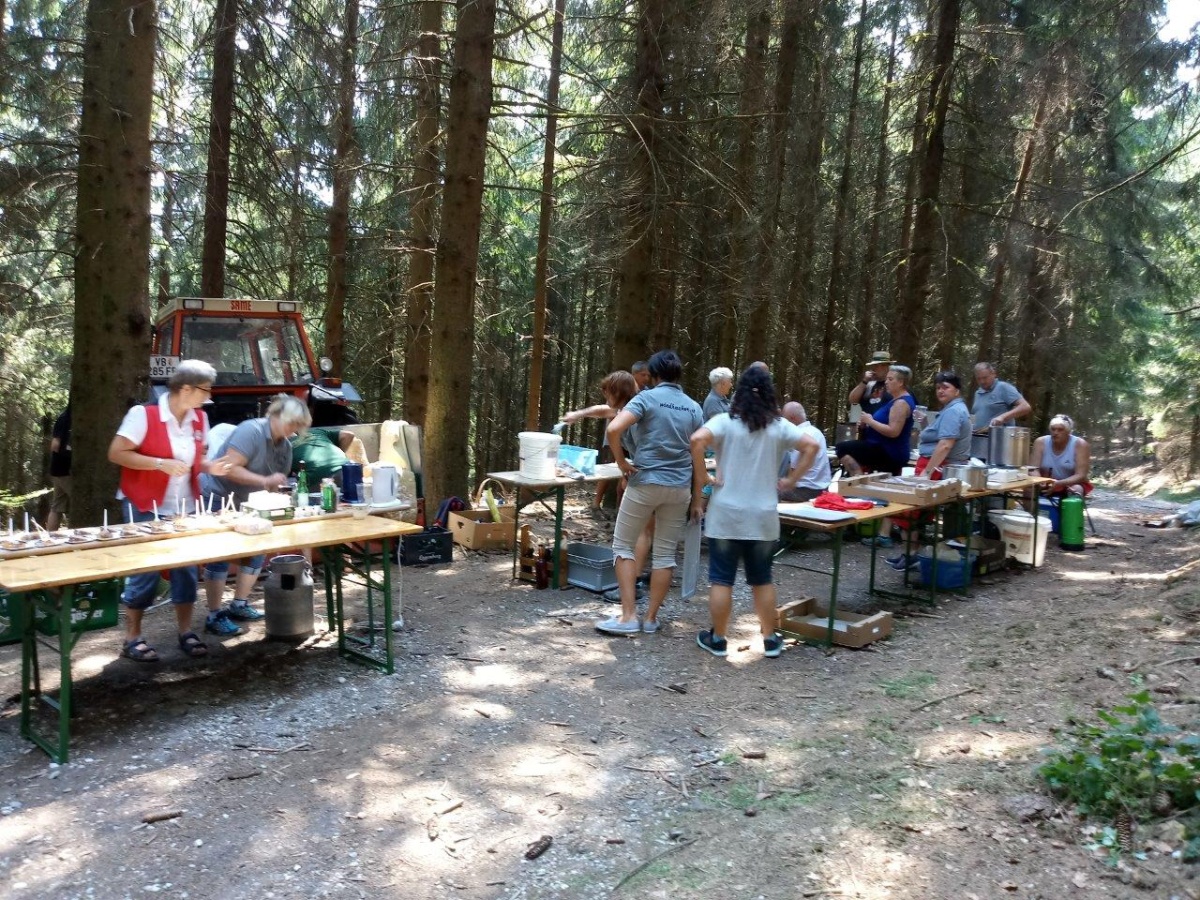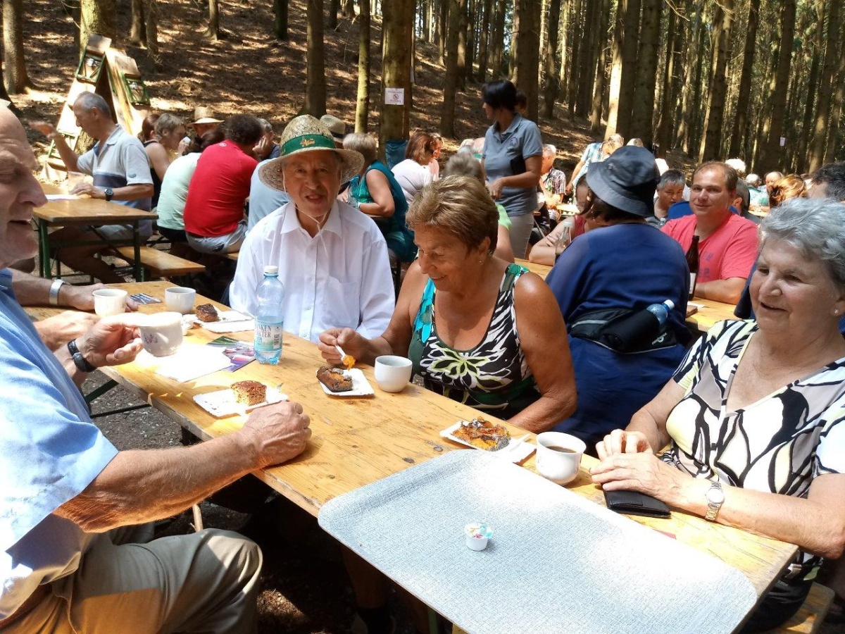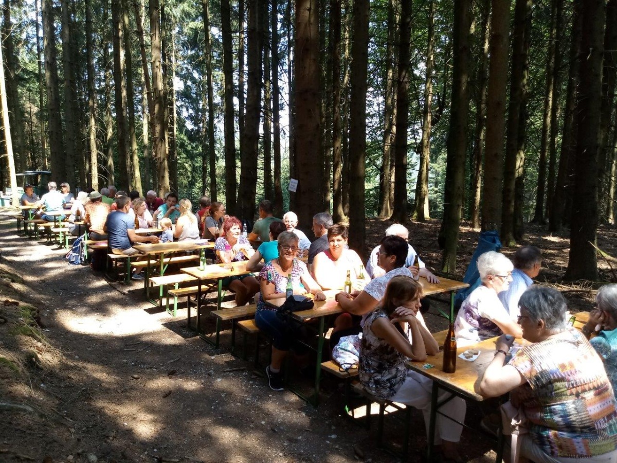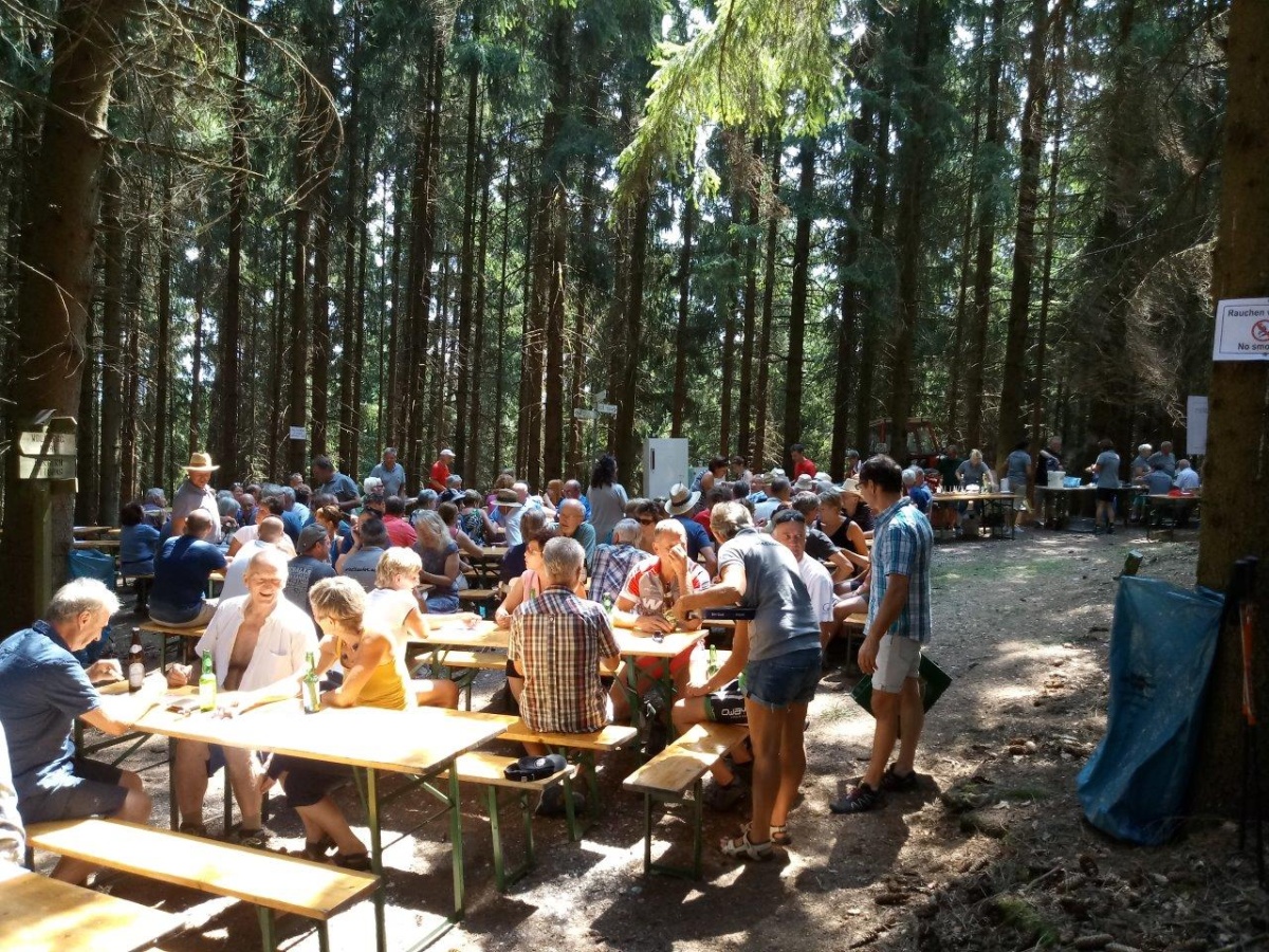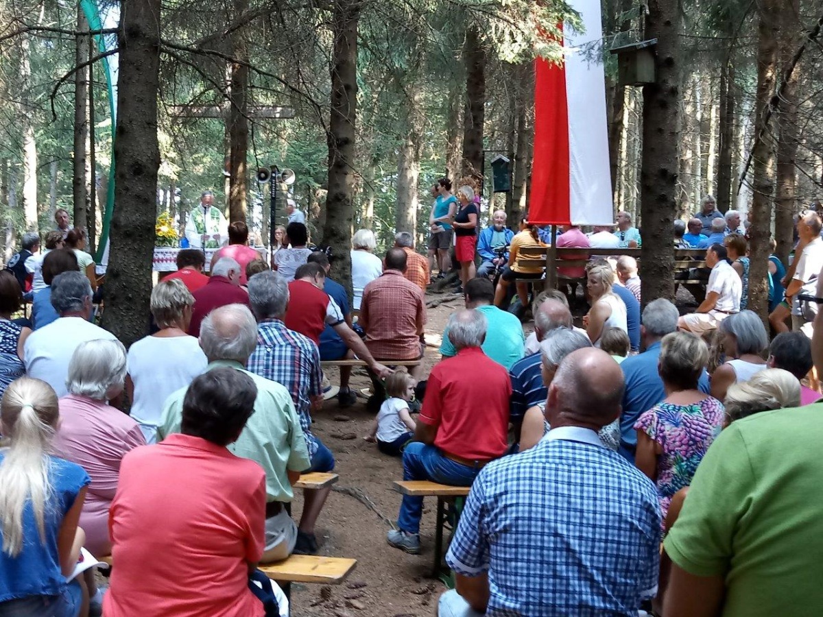 Zum Jubiläum machten sich bei herrlichem Wetter wieder viele auf den Weg zum Wiedhackkreuz, um gemeinsam Gottesdienst zu feiern und anschließend noch bei einem gemütlichen Frühschoppen die gute Waldluft zu genießen. |