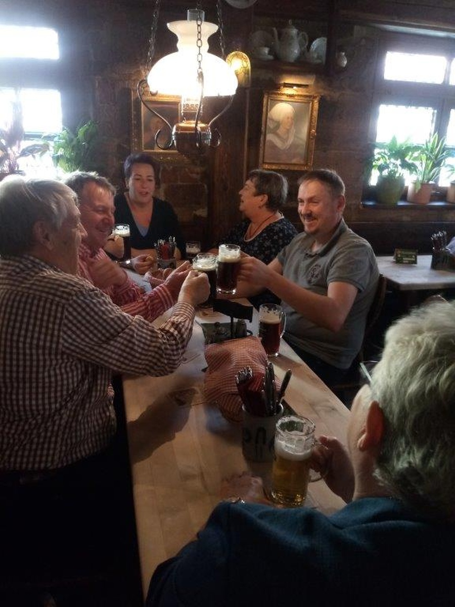 Auf der Fahrt dorthin machten wir einen Abstecher nach Nürnberg, wo wir in einem urigen alten Wirtshaus zum Mittagsessen einkehrten. Nach einer Altstadtbesichtigung besuchten wir noch den "Schorsch", er war langjähriger Urlaubsgast beim Plötzeneder und lebt jetzt in einer betreuten Wohnung, da es ihm gesundheitlich nicht mehr so gut geht. Dann fuhren wir weiter nach Coburg, wo wir in einer Pension übernachteten. Nächsten Tag ging es weiter nach Königsee, ehemalige DDR, wo der Köhler Albert seinen Gutschein fürs Panzerfahren endlich einlösen wollte. Leider ging die Firma mittlerweile in Konkurs, die den Gutschein ausgestellt hatte. Er konnte dann doch mit einem Ural Dreiachslastwagen einige Runden drehen und mit einem leider schon gewaschenen Panzer in die Garage mitfahren, sonst hätte er auch mit diesem ein paar Runden drehen können. Dann ging es wieder heimwärts, wo wir abends eintrafen. Der Ausflug wurde mit einem 9 Sitzer Bus gemacht und Manfred Glück machte den Chauffeur und wir legten 1000 km zurück. Text und Fotos: Franz Kurz